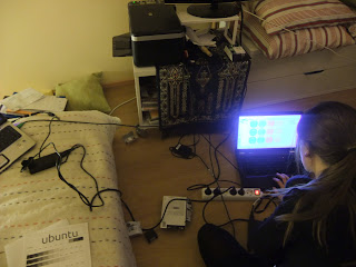 joten aloimme tehdä tarroja itse. Tämä onnistui kyllä, mutta työ oli hieman luultua hitaampaa. Sen askarteluhenkisyys ei suinkaan haitannut. Emme tarvinneet muuta kuin tulostettavaa tarrapaperia, uudet mustekasetit printteriin ja kontaktimuovia. Värilaserilla tarrojen värit olisivat erottuneet hieman paremmin, mutta Aleksandriassa oleva yksilö ei toiminut tuona päivänä.